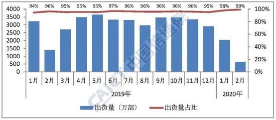 1-2月份Android手機總出貨約2390萬部,其余是iPhone,約280萬部。