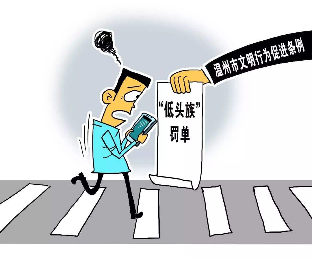 據(jù)報(bào)道,溫州市在2019年元旦開(kāi)始實(shí)施的《溫州市文明行為促進(jìn)條例》,明確規(guī)定,對(duì)于行人通過(guò)路口或者橫穿道路時(shí)低頭看手機(jī)、嬉戲等行為要重點(diǎn)整治,違反該規(guī)定的會(huì)受到警告或十元罰款。