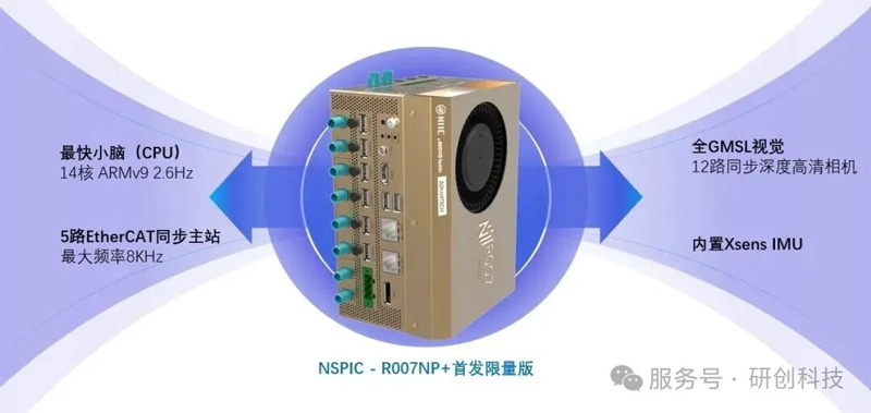 在網絡和接口配置上,NSPIC-R007NP+?設有8 路千兆以太網支持最大 5 路 EtherCAT 同步多主站 / 三路同步冗余主站,同時具備兩路 2.5G 千兆接口,進一步提升了數(shù)據(jù)傳輸?shù)撵`活性與高效性。同時,12 路 GMSL 同步攝像頭接口最大可支持 6 路深度相機或 12 路高清相機,保證了豐富的感知設備接入能力。工業(yè)用隔離數(shù)字量輸入(NPN/PNP)與輸出(NPN),隔離 RS485 與高達 4 路 CAN/CANFD 接口,為工業(yè)場景的復雜控制需求提供了全面支持。