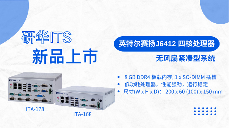 研華智能交通ITA-1000系列再上新品,ITA-168 / ITA-178基于英特爾賽揚Celeron J6412低功耗處理器,性能強勁,運行穩(wěn)定,支持雙通道內(nèi)存,可同時兼顧板載以及內(nèi)存條擴展需求。